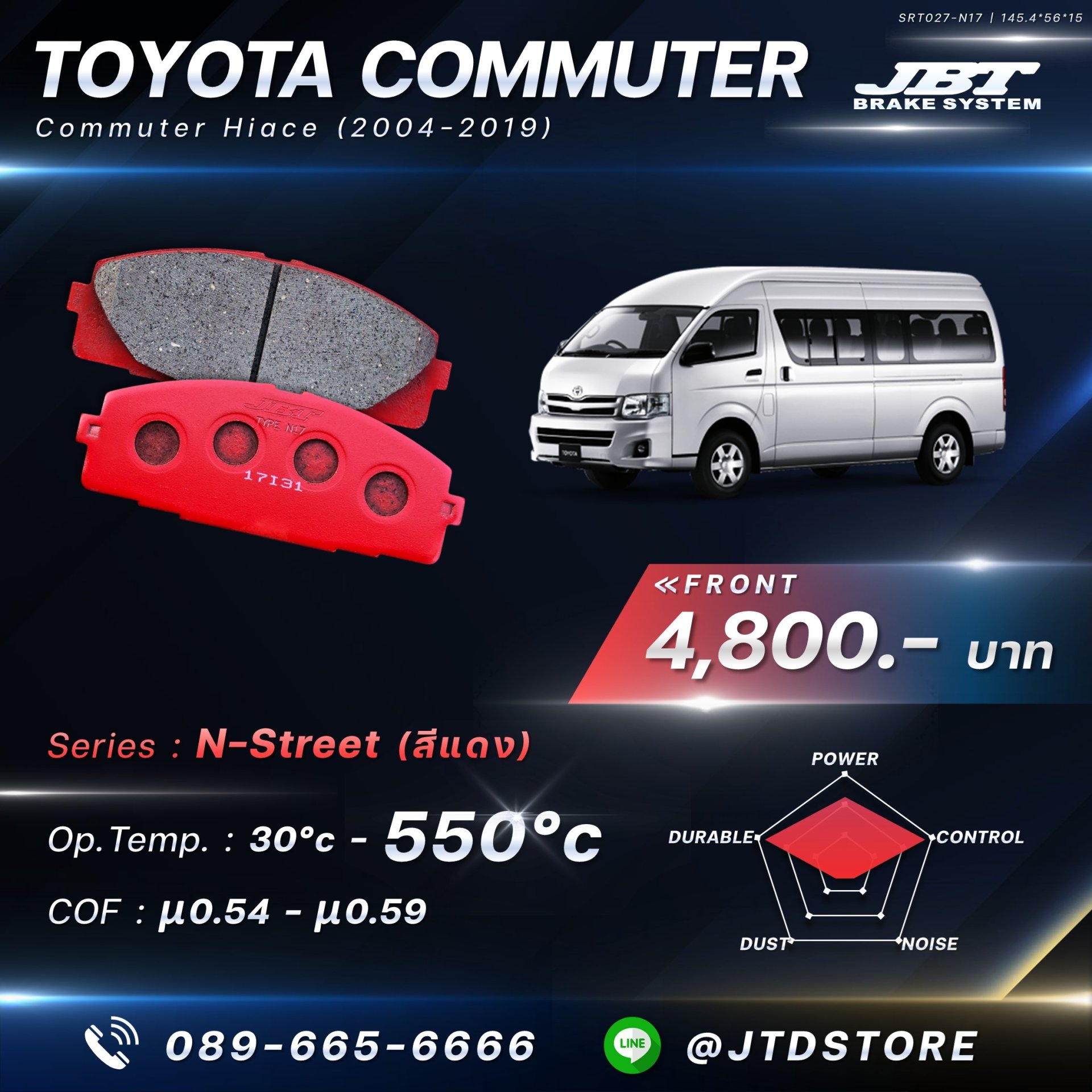 หมวดหมู่ : ผ้าเบรก JBT ,  Toyota ,  Commuter ,